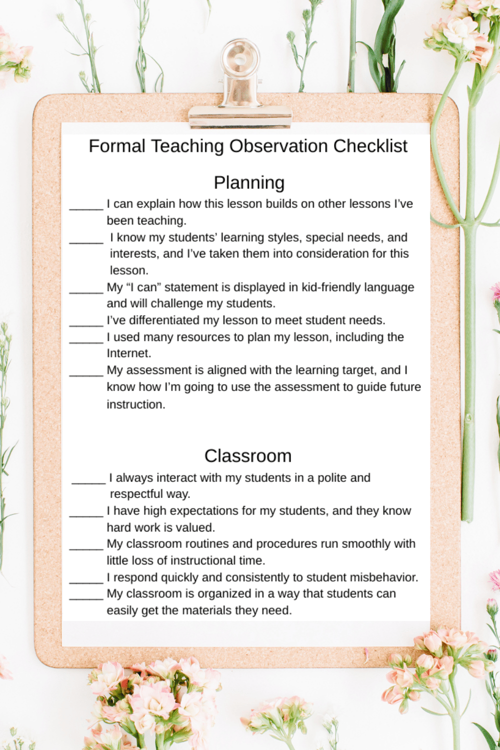 Use this checklist to prepare for your formal teaching observation. Join my email list to get it for FREE!